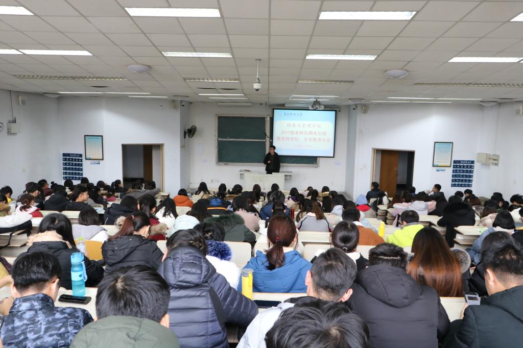 于弘毅楼E302室召开2017级本科生期末总结暨考风考纪、安全教育大会。会议由张显全老师主持,2017级全体本科生参加。