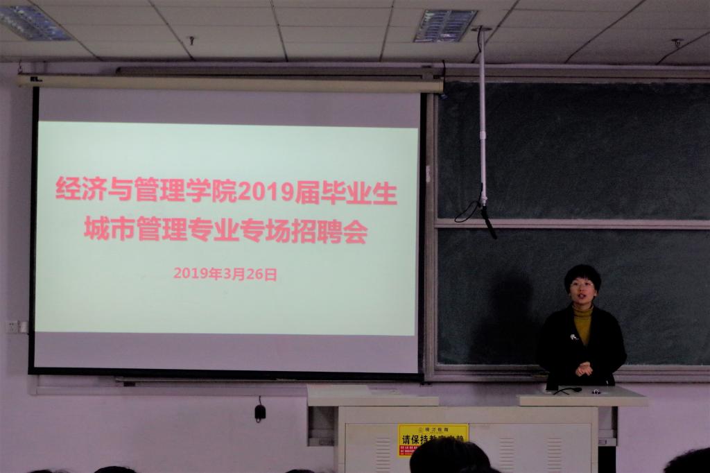 2019届毕业生“高层次、高质量、高粘性”就业促进月活动方案》具体要求,为进一步搭建毕业生就业平台,结合学科特点和学生实际情况,城市管理专业于3月26日在明德楼410、412、414教室成功举办专场招聘会。