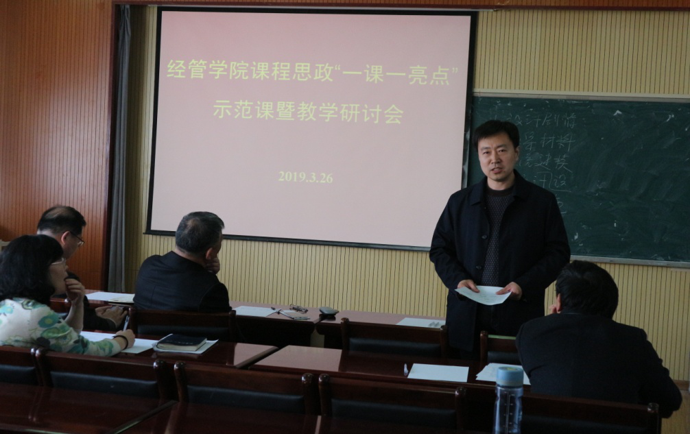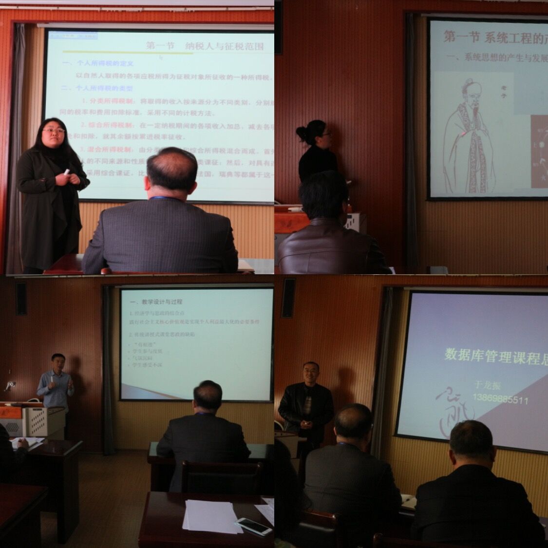 会上,教师张玉、林琳、于龙振和祝晓波分别进行了“一课一亮点”课程思政示范课教学展示。张玉老师在税法课讲述个人所得税纳税人与征税范围的专题时,以影视明星范冰冰偷逃个税为引入案例,强调公民依法纳税的重要性,通过说明国家税收的最终去向,帮助学生理解公民为什么负有纳税义务;林琳老师在系统工程课讲述系统思想的专题时,追溯了中华文明中系统思想的精髓,加深学生对系统思想理解的同时,帮助学生树立对中华文化的自信;于龙振老师在数据库管理课程讲述结构化编程内容时,引导学生思考如何用“if….else”程序结构体现中美俄大国关系的因果走向,通过让学生设计中美俄大国关系的剧情游戏,提升学生编程能力的同时,培育学生的国家意识和社会责任意识,将爱国热情自然的融入到课程教学当中;祝晓波老师在经济学课程中,通过“最后通牒博弈”的微实验,让学生亲身体验博弈行为,帮助学生分析认识只有诚信、公平,友善,才能在合作与博弈中更好的获益,很自然的将社会主义核心价值观教育与经济学理论教学有机的融合在一起。