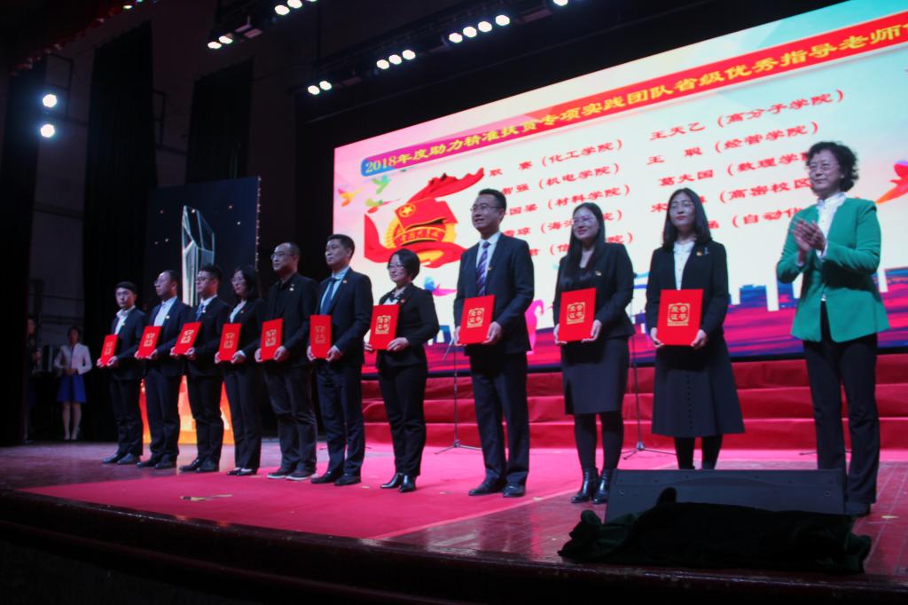 榜样青春颁奖典礼对2018年度在基层团建、创新创业、社会实践、志愿服务、校园文化活动等方面进行了总结,大会表彰了“红旗分团委标兵”称号、“扶贫专项计划省级优秀指导老师”、获“创青春”全国大学生创业大赛获奖团队、校第十二届“十大杰出青年”、“北京赛车PK10