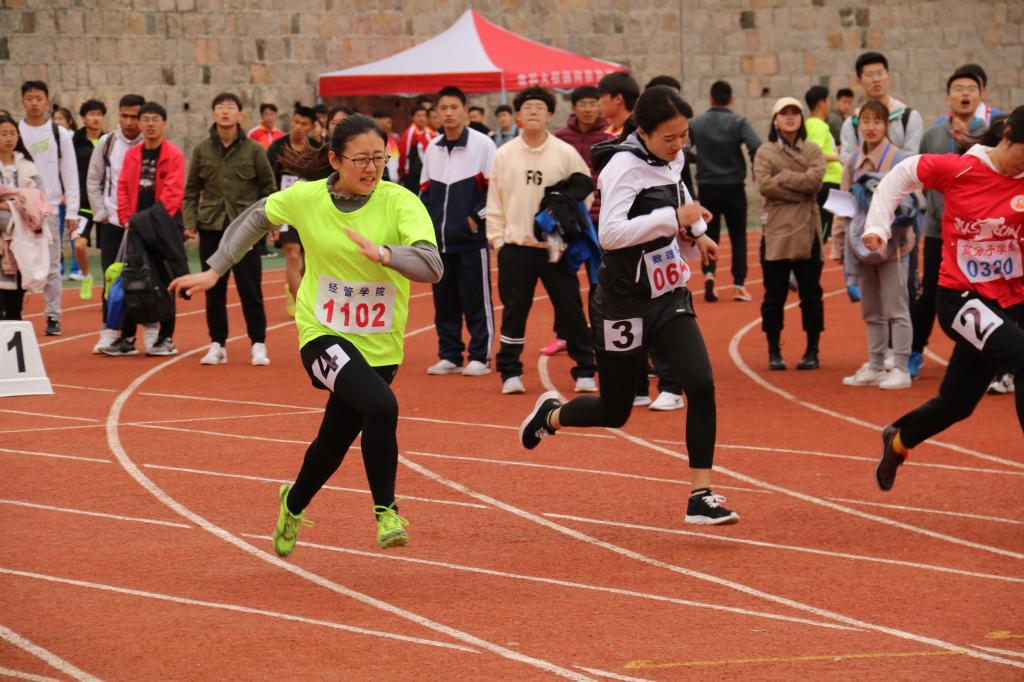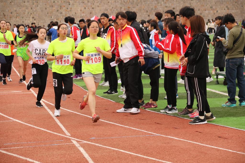 的田径队运动员们团结一致,勇于拼搏,紧紧咬住每一个项目,在女子100、200、1500、3000、4*100、4*400、跳高、铅球项目上均有收获,在男子400、800、1500、4*100、4*400等项目上取得重大突破,实现了男子运动会成绩的跨越式进步。他们的拼搏精神深深地感染了每一位看台观众,一滴滴全力以赴的汗水挥洒跑道,一声声“经管加油”的口号响彻操场。