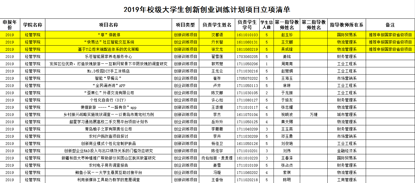 公布了2019年校级大学生创新创业训练计划项目立项名单,北京赛车PK10
