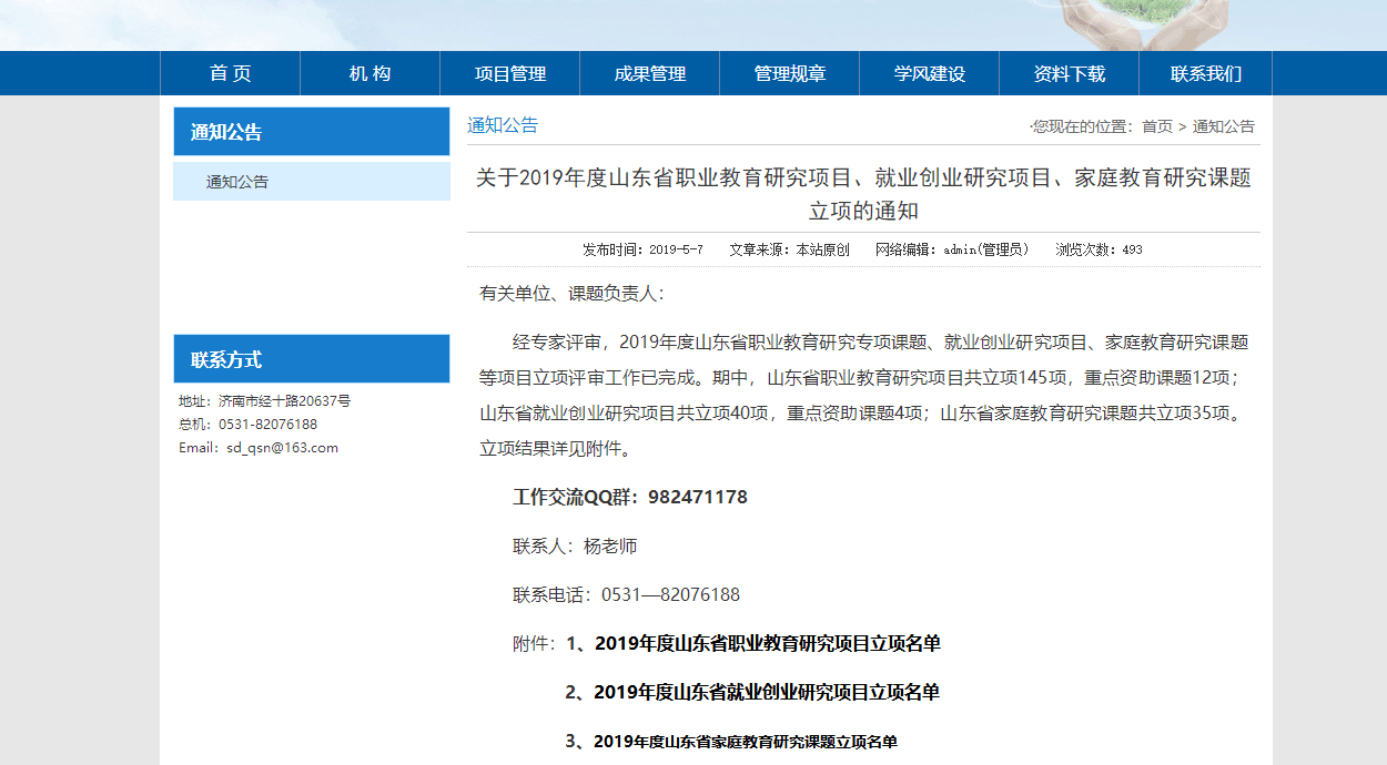报送的项目中华民族共同体视域下少数民族群体毕业生就业帮扶问题研究-以青岛地区高校为例、大学生基层就业意愿影响因素研究—基于青岛市在校大学生的实证调查、供给侧改革视阈下高校大学生就业指导工作探析获批立项,取得3个立项的好成绩。