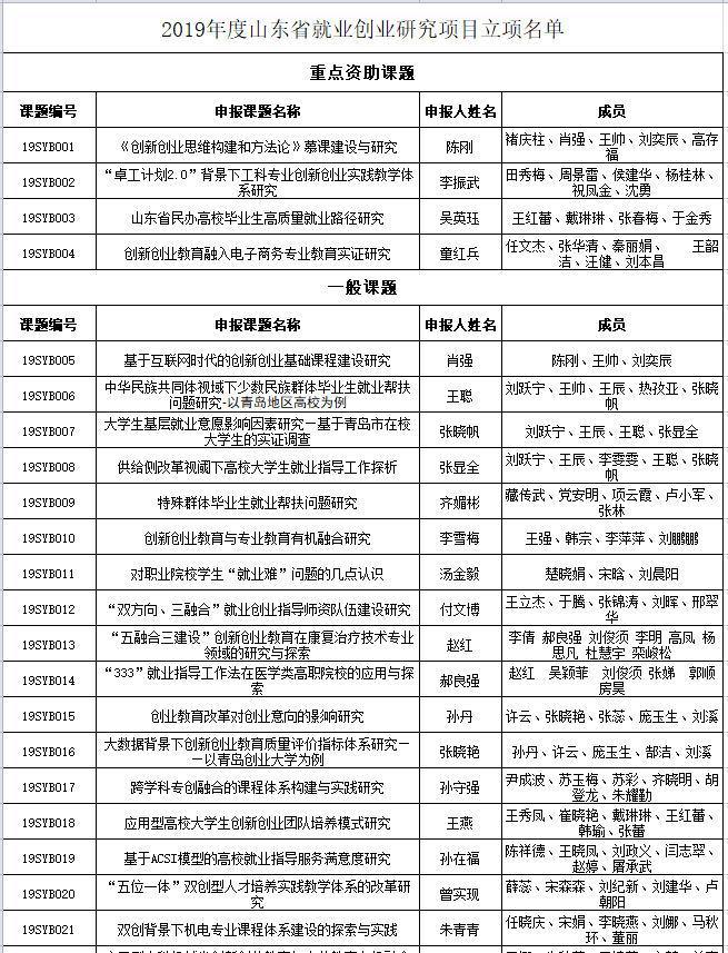 为全面贯彻习近平新时代中国特色社会主义思想和党的十九大精神,全面贯彻全国教育大会精神,突出加强就业创业理论研究的前瞻性、应用性和实践性,进一步提升就业创业工作水平,山东省社会科学基金委员会于2019年2月组织启动2019年山东省就业创业研究项目申报工作。近日,经专家评审,最终确定山东省就业创业研究项目立项40项,重点资助课题4项。北京赛车PK10