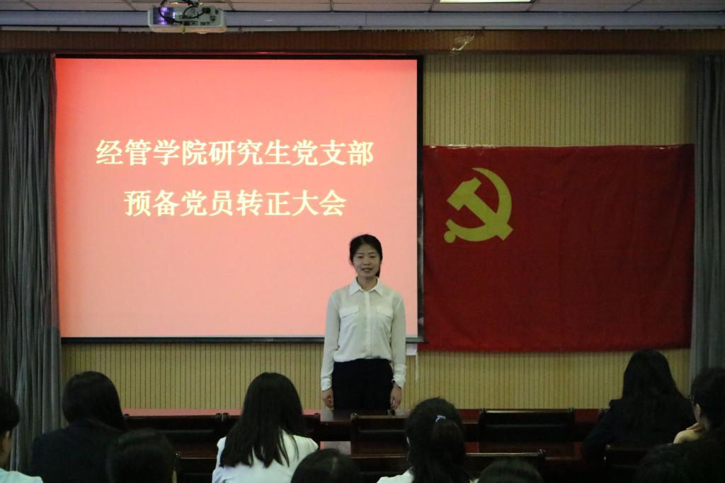 大会伊始,与会人员全体起立齐唱《国际歌》,申请入党的发展对象李青格宣读入党志愿书,汇报自己对党的认识和入党动机等问题,之后发展对象的两名入党介绍人分别从学习、工作、思想等方面介绍发展对象的基本情况并发表意见,支部委员会介绍申请人的政治审查情况,随后与会人员开展积极讨论,并对发展对象提出了不足和改进建议,支部大会作出无记名投票并宣读决议,同意接收李青格同志为中共预备党员,将向上级党委申报进行审批。紧接着,预备党员国宇洁宣读转正申请书,并向党组织汇报这一年来的思想、工作和学习等情况,对自身的进步与不足作了认真的总结。入党介绍人对申请人在预备期一年内的思想、工作、生活等各方面表现进行总结评价,随后支部大会作出无记名投票并宣读决议,一致通过国宇洁同志转为正式党员。
