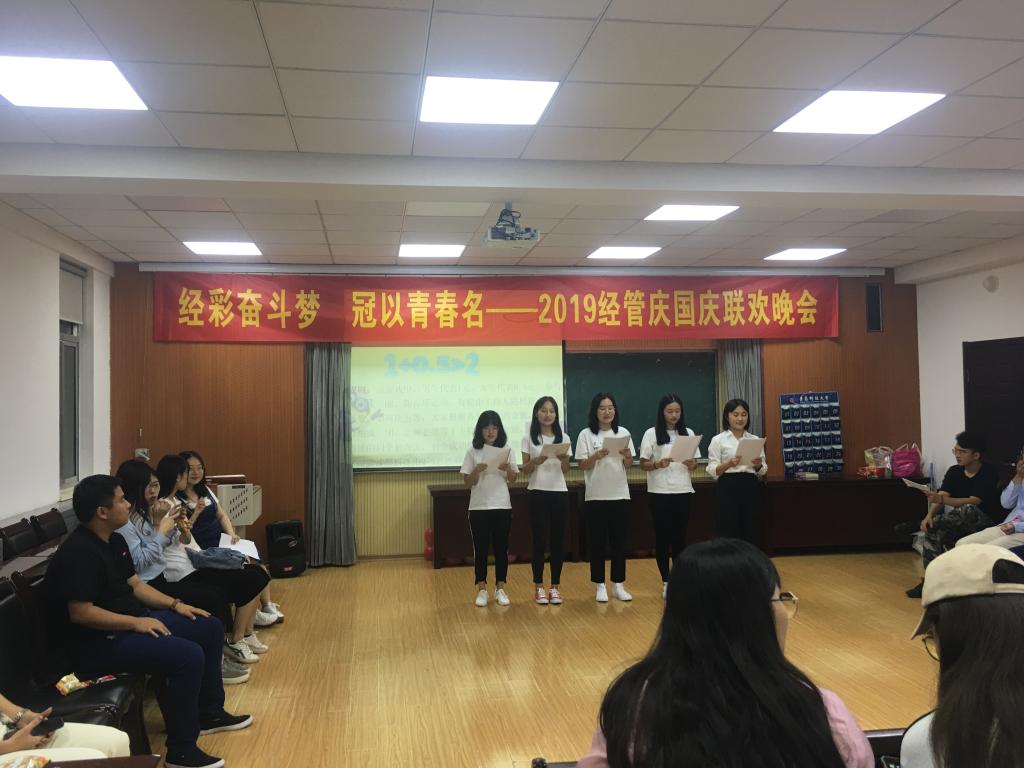 研究生会主办的“经彩奋斗梦 冠以青春名”2019经管研究生庆国庆联欢晚会于经管楼419室举行。北京赛车PK10