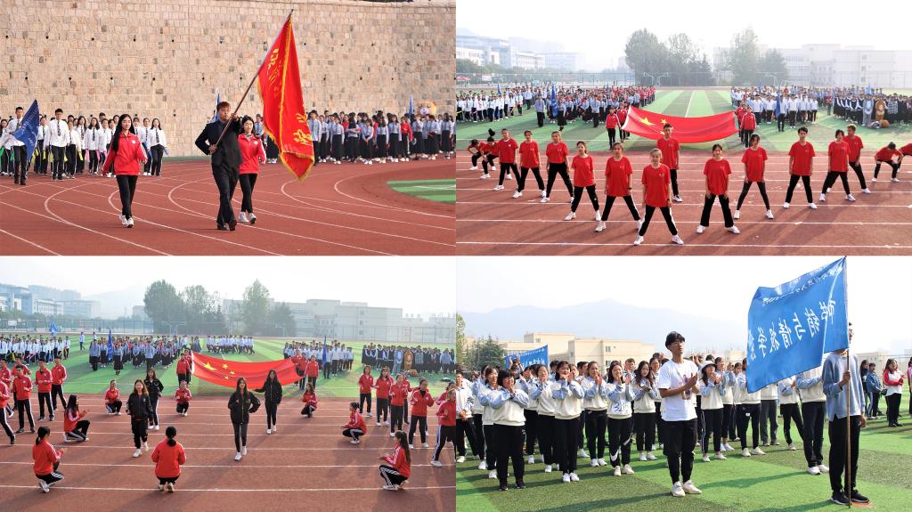 崂山校区南苑运动场拉开帷幕。此次运动会以“春华秋实七十载,厚积薄发展‘经’彩”为主题,分为田赛、径赛以及趣味赛三个部分。