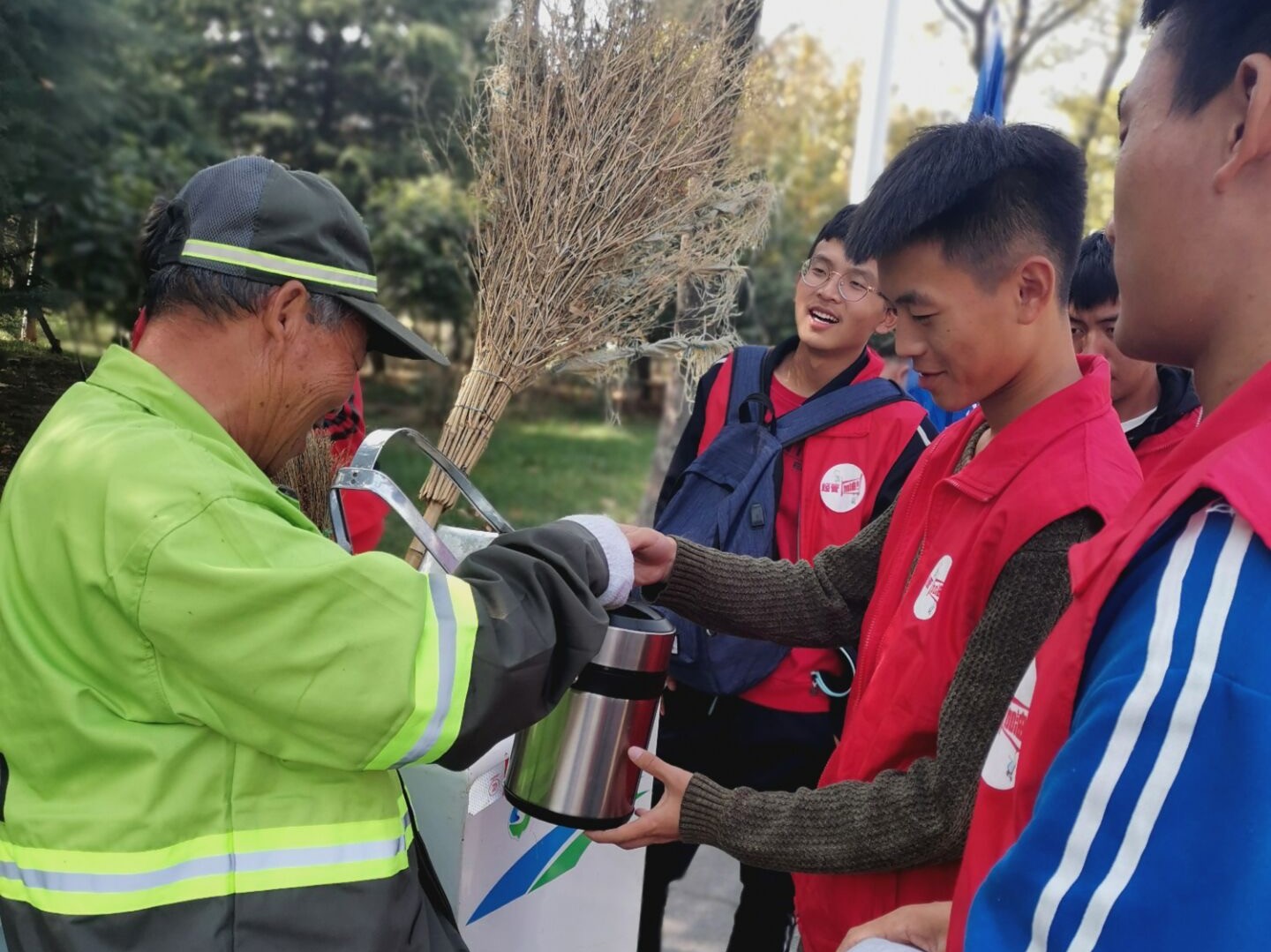 活动当天,同学们“变身”环卫工人,接过他们手中沉甸甸的工具,清扫地面,捡拾垃圾,亲身体验环卫工作的艰辛,用实际行动支持环卫工作、关爱环卫工人。同时,也为环卫工人递上一杯温热的豆浆,送上祝福和关爱。同学们纷纷表示,环卫工人们发扬“宁愿一人脏,换来万家净”的精神,爱岗敬业,无私奉献,用辛勤的汗水改善了城市环境和卫生面貌,不愧于“城市美容师”的美誉。