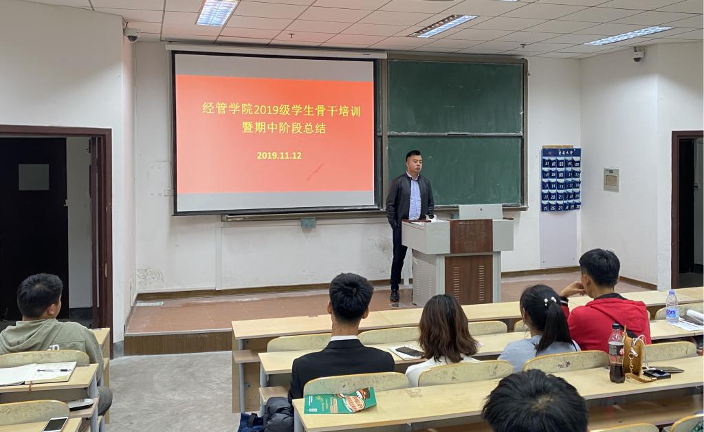 在明德楼330召开2019级学生骨干培训暨期中阶段总结会,以提升学生干部政治素养,增强学生干部自主管理能力。2019级辅导员孙一君、初桂民、于潇华及主要学生干部参加此次会议。