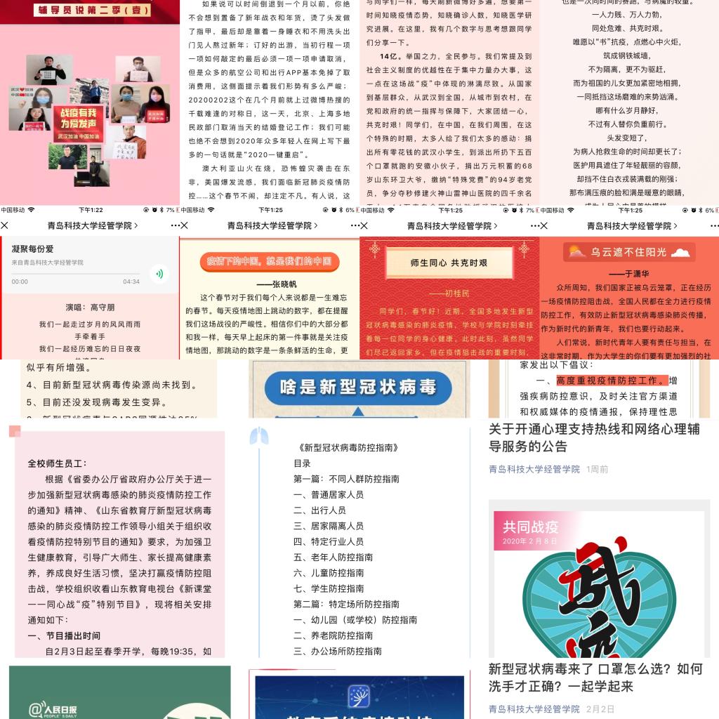 经管学子也纷纷行动起来,在做好自我防护的前提下,以力所能及的方式投入到防控一线工作中去。他们有的坚守在宣传一线为大家把疫情防控相关信息及时准确地发布;有的通过绘画、书法、撰稿的方式在网络上积极传递正能量;有的争当志愿者在当地社区疫情防控工作中发挥自己的光和热;有点通过官方渠道参与捐款活动,为抗击疫情贡献爱心。凝心聚力,冲锋一线,用行动彰显了新时代科大学子的热血担当。