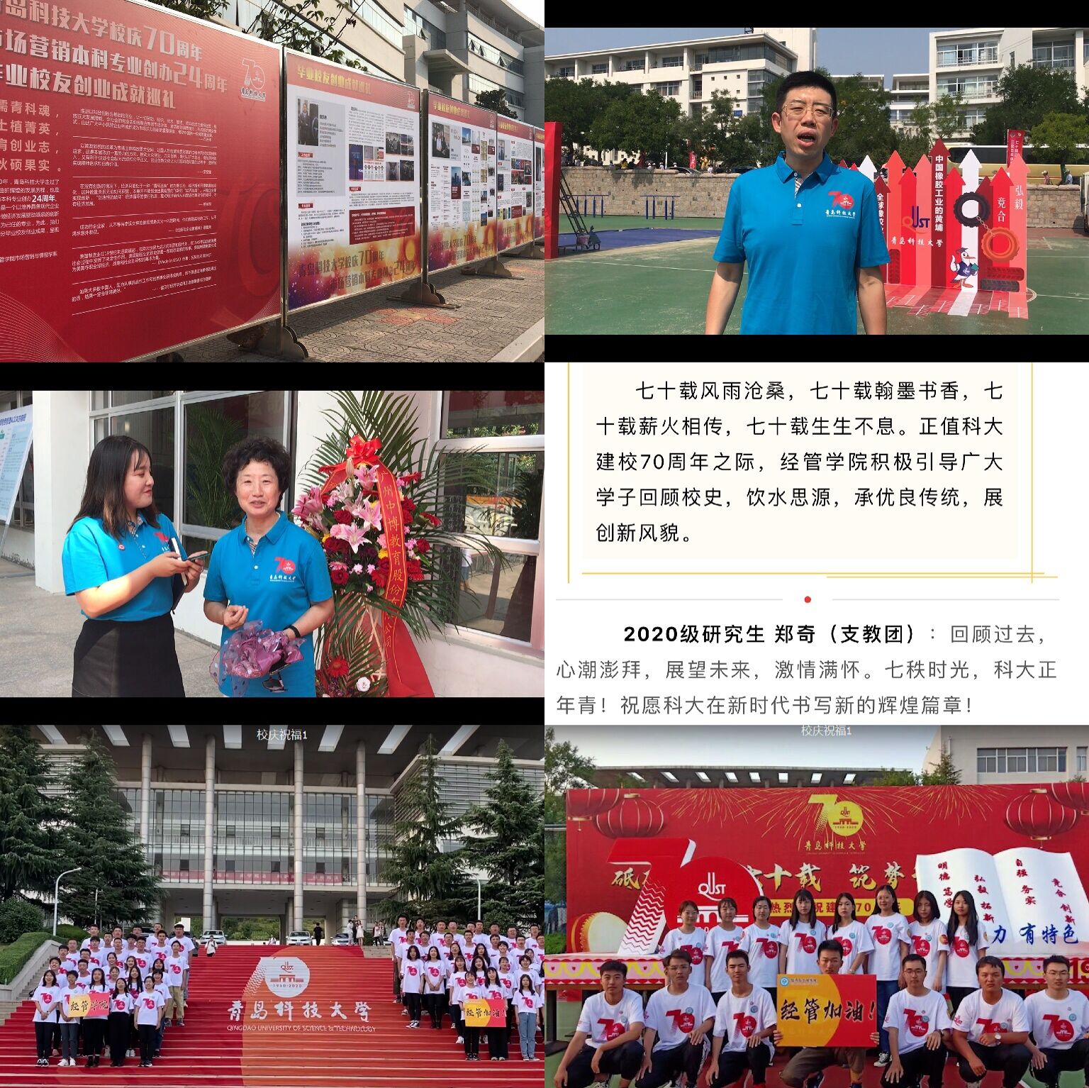 工作,致力于把70周年校庆办成一场“隆重热烈、简朴务实、内涵丰富、助力发展”的盛会。开展“校园专访--我与科大的故事”“剪影科大”“我为校庆送祝福”等校庆专题系列活动,用“一采一影一视频”的方式展现了经管学子知校、爱校、荣校的大爱情怀。盛邀海内外校友、广大师生相聚云端追忆历史,通过“云祝福”“云回忆”“云展望”,聚力同心,共襄盛典。“挂横幅”“置花篮”“发礼物”,广泛动员,全院师生通力合作,积极引导广大学子饮水思源,承优良传统,展创新风貌,营造热烈浓厚的庆典氛围。
