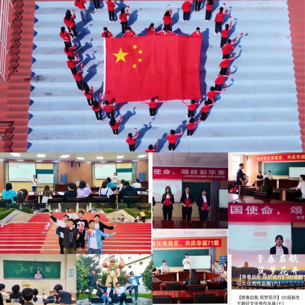 组织开展2020级新生开学典礼暨专业教育大会、“七秩芳华一路歌,‘经’彩青春创未来”2020级新生“开学思政课”暨主题教育活动、“青春起航,筑梦花开”新生适应性系列教育、“经管领跑人”经验分享会、专业师生座谈会、少数民族见面会、“青春向上,有梦有young”2020级新生军训教育主题活动、庆校庆系列活动、“青春奋进告白祖国,同心筑梦礼赞时代”庆祝新中国成立71周年主题教育活动、“以家人之名、暖游子之心”庆双节系列活动等,帮助新生树立理想信念,培养专业志趣,提升核心素养,顺利完成角色转变,引导广大新生锻炼身体素质、磨炼坚韧意志的同时,凝聚爱国力量,青春奋斗起航。