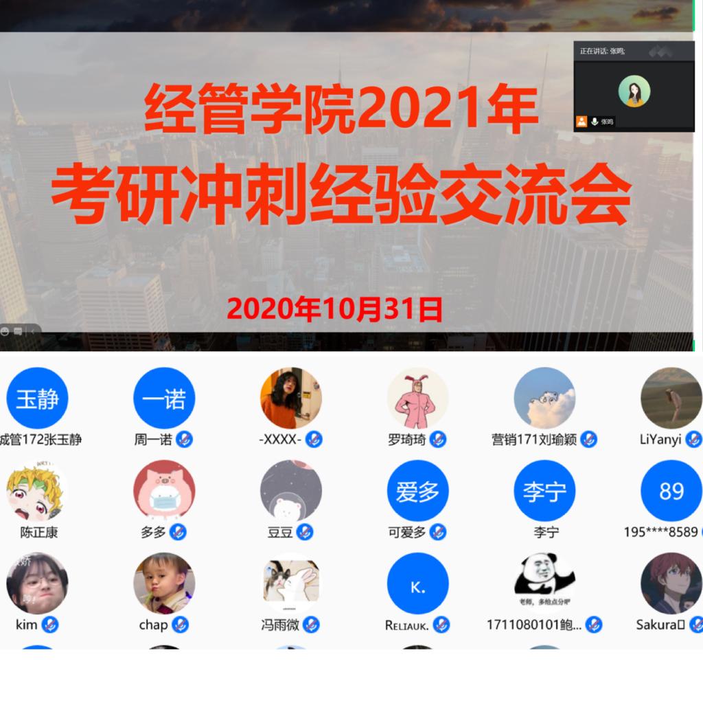 2021年考研冲刺经验交流会于线上圆满举行,百余名17级学生聆听了本次交流会。