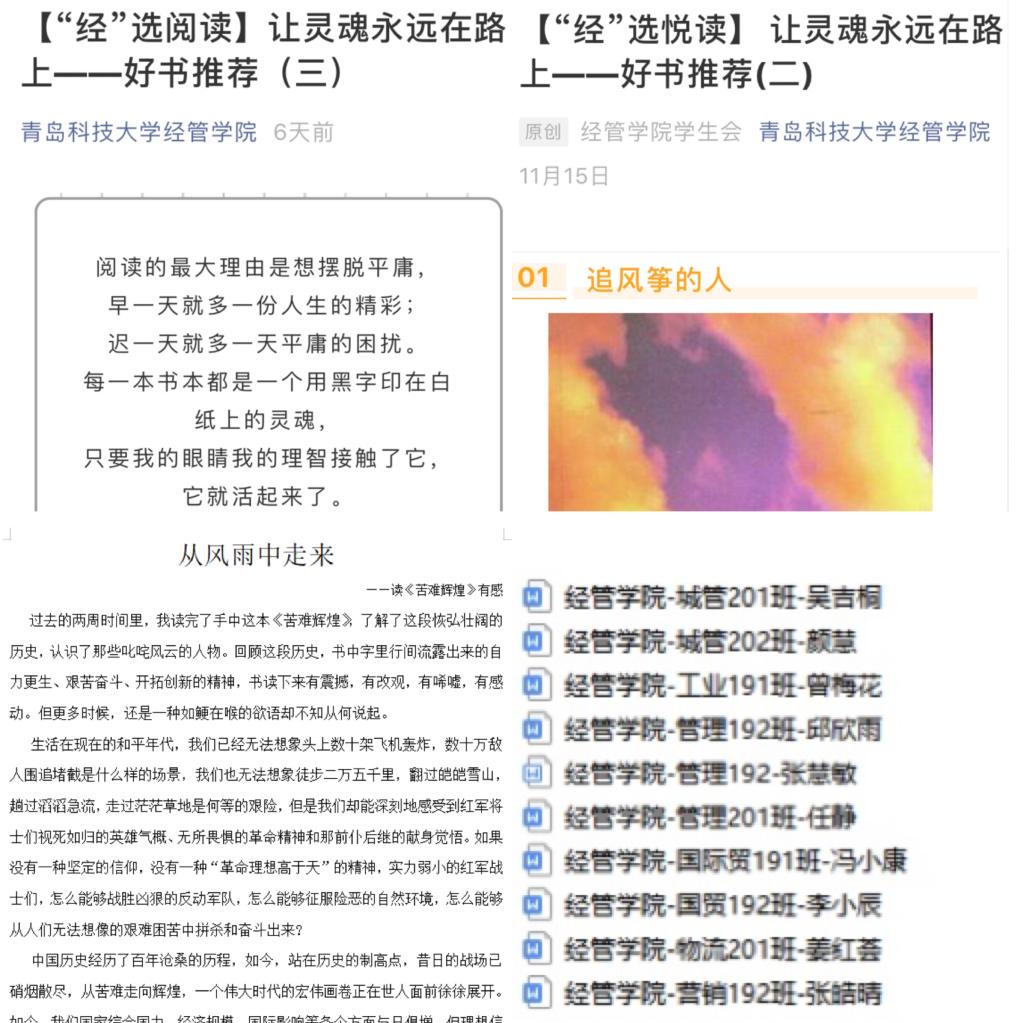 利用线上线下同时发力,通过微信公众号、经管小石头、易班等线上平台开展“好书推荐”系列活动,经管学子通过热烈讨论,交流心得,深化读书感想,指导自身行动,并号召全院学生培养读书习惯,争做读以修身,涵养品德的先行者,做传承经典、引领风尚的实践者。同时,北京赛车PK10