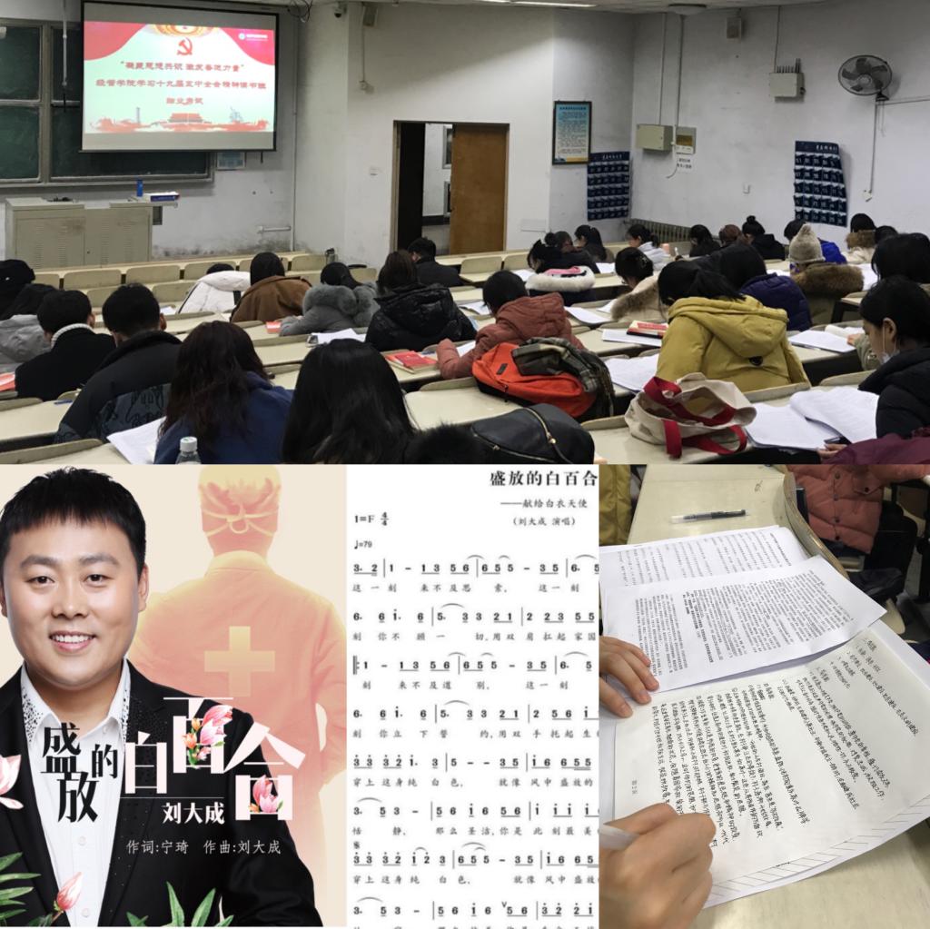 学习十九届五中全会精神读书班创新学习形式,融合音乐教育、视频展示、辅导报告、主题探讨、对话交流、学生领学、随堂测验、结业考试为一体,促使在沟通研讨中,在思想碰撞中,在动态生成中收获学习实效。在情景课堂中,通过音乐元素融入思政主题,创新理论传播形式,极大提高学生的学习兴趣;在学习过程中,通过观看相关视频、展示数据对比、宣讲先进案例、解读理论政策,引导学生自学与领学相统一,探讨与研修相结合;在随堂测验中,学生面对“两个一百年”奋斗目标、十九届五中全会提出的“14个关键词”、“12项重要举措”等知识点如数家珍,以较高的理论素养展示扎实的专业功底;在结业考试中,学生将所学所思转化为所想所悟,汇聚成知行合一的磅礴动力。