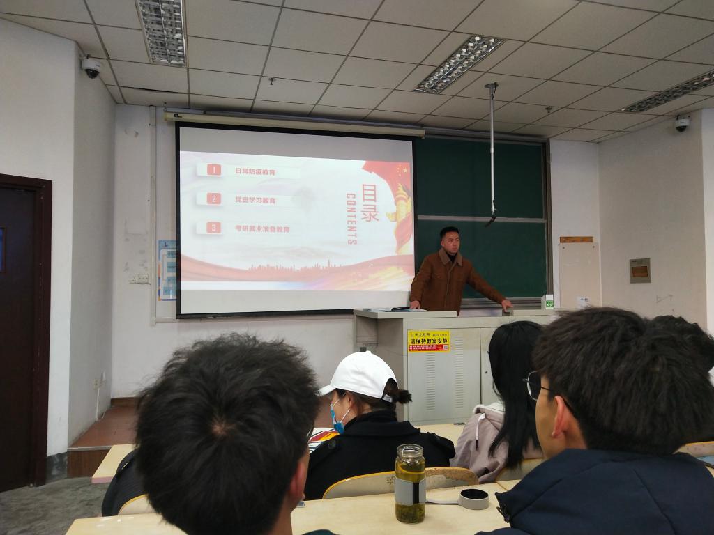 3月9日下午,2018级于明德楼412和弘毅楼403教室分别召开了“奋进百年,砥砺今朝——开学第一课”主题班会,会议由辅导员高守朋、张晓帆主讲。