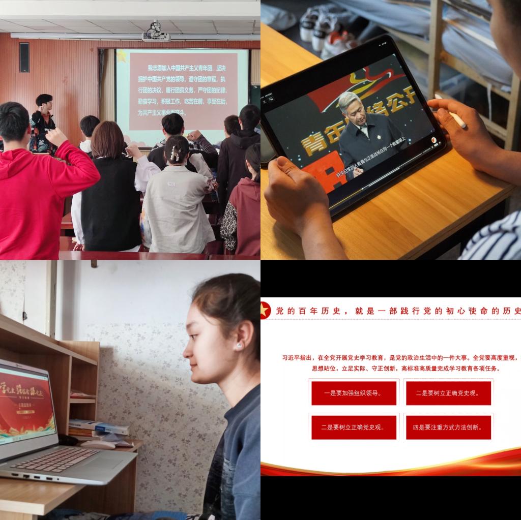 将进一步以党史学习教育为契机,引导广大学子发挥优势、脚踏实地、奋勇担当,以青春方式表达对党的热爱、对祖国的热爱,以青春的担当唱响时代最强音,以昂扬的精神风貌和优异成绩迎接建党100周年。