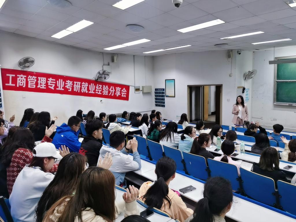 2021年5月15日,工商管理专业于弘毅楼E区101教室举办考研就业经验分享会。此次分享会邀请了2021年考研、考公成功的七位学长学姐为参加分享会的18、19和20级同学进行面对面的经验分享与交流。会议由工商管理系副主任孙小强老师主持。