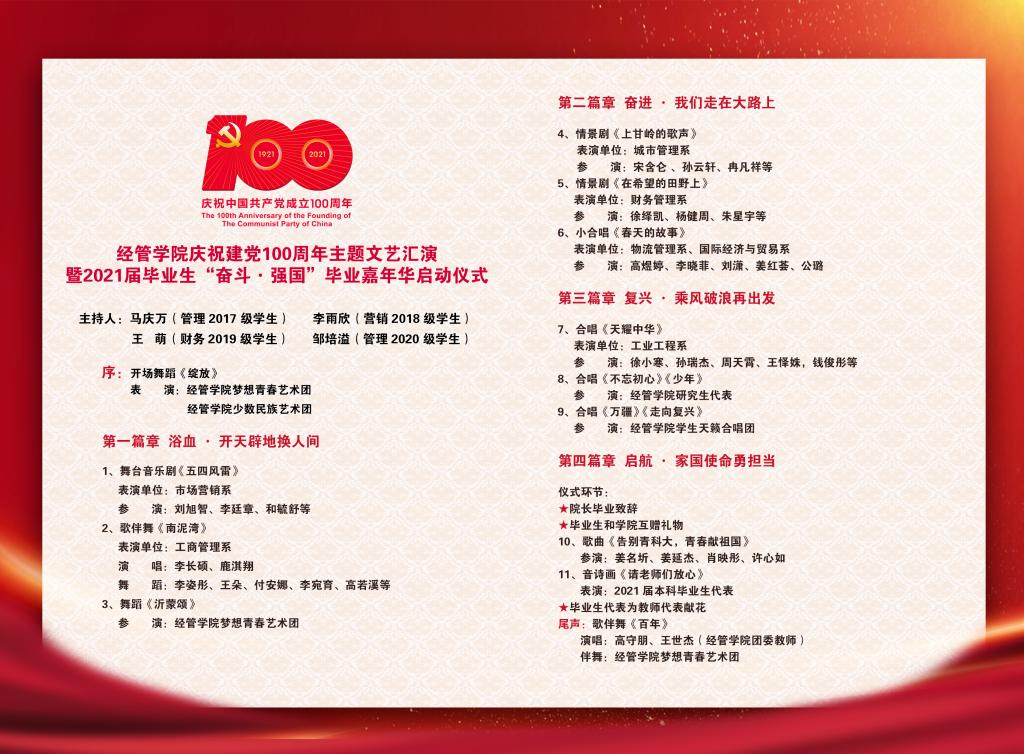 百年征程波澜壮阔,百年初心历久弥坚。6月19日晚,庆祝建党100周年主题文艺汇演暨2021届毕业生“奋斗·强国”毕业嘉年华启动仪式在崂山校区第二报告厅隆重举行。北京赛车PK10