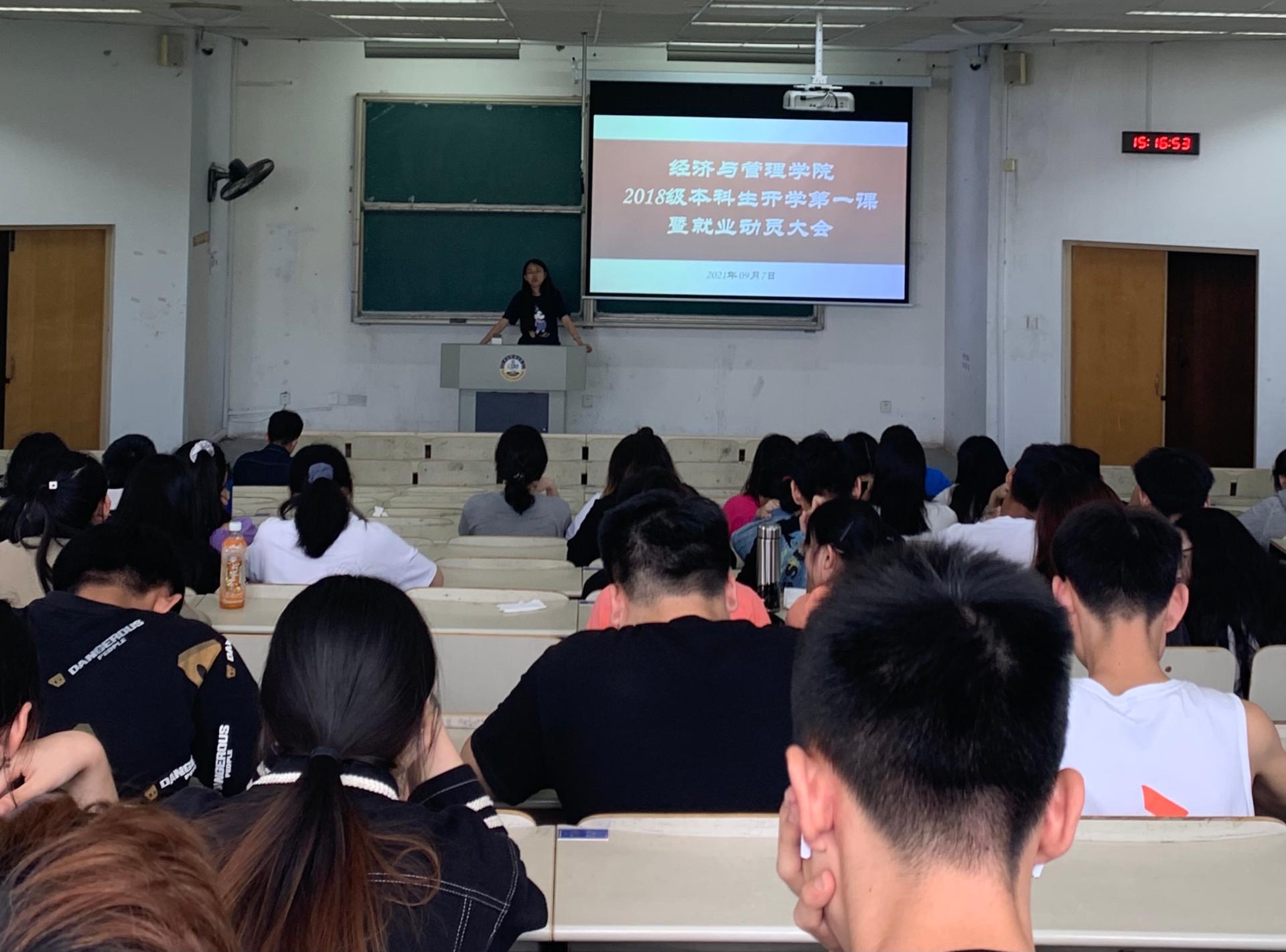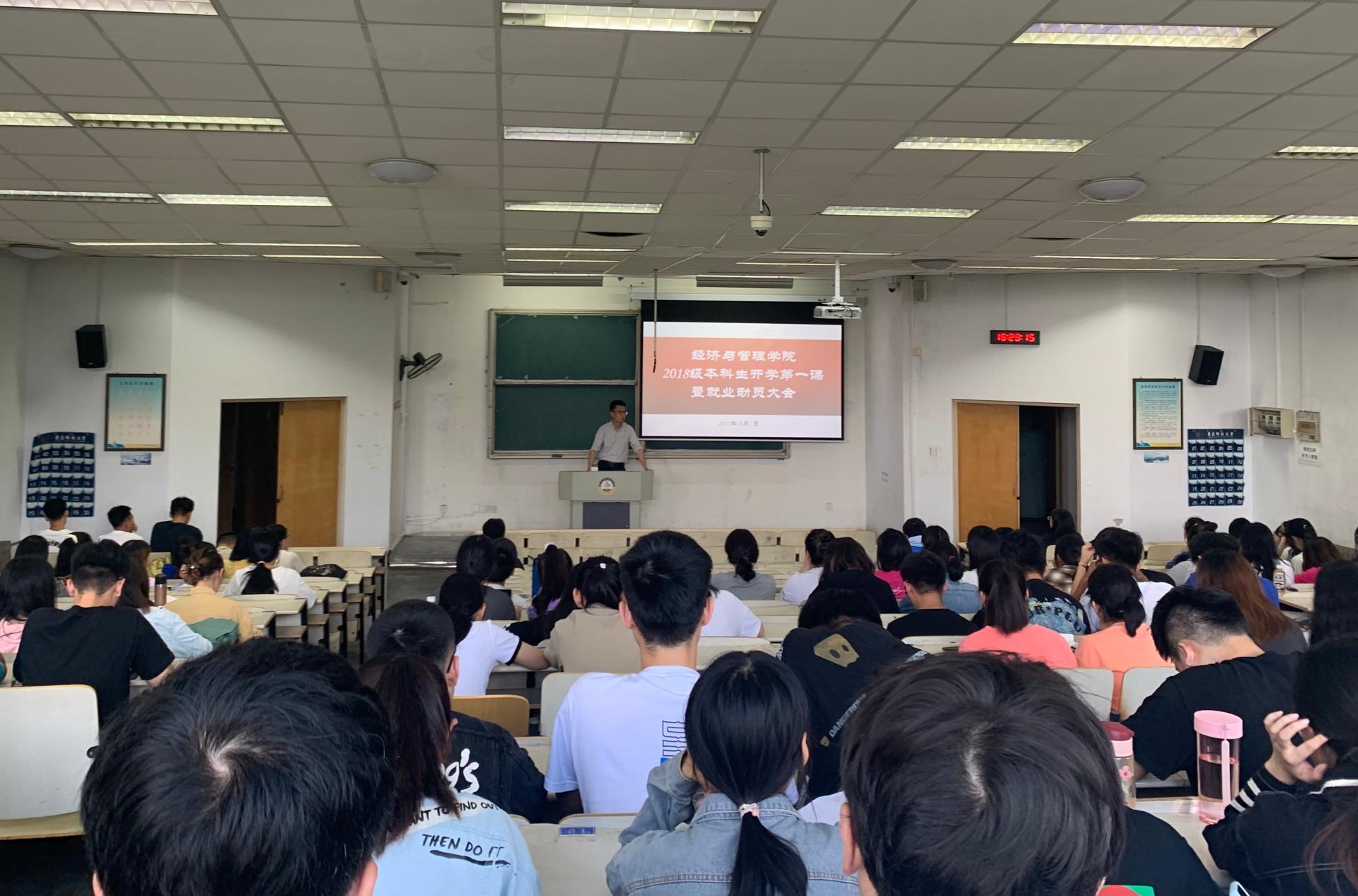 为确保新学期各项工作顺利开展,进一步提升毕业年级日常教育管理水平,消除毕业生就业困惑,帮助同学们了解就业形势、就业政策,树立正确的就业观和择业观,9月7日下午,2018级在弘E302举行“新学期、新起点、新征程”开学第一课暨2022届毕业生就业动员大会。