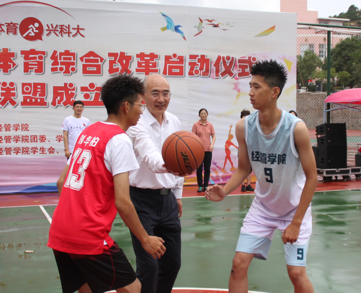 “请党放心,强国有我!”“爱体育,兴科大!”,在全场师生发出的振奋人心的口号声中,校长陈克正为学生篮球联赛开赛。参赛学生们意气风发,尽情释放着对篮球的热爱,用酣畅淋漓的赛场诠释了体育精神。