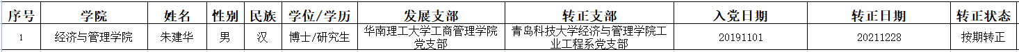 工业工程系党支部于2021年12月28日召开预备党员转正大会讨论朱建华同志的转正问题,同意其按期转为中共正式党员,现将朱建华同志情况予以公示。公示期为2021年12月28日至2022年1月5日。如有异议,请于公示期内到北京赛车PK10