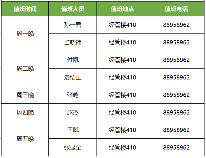 北京赛车PK10 学工队伍2022-2023学年第一学期常态化值班安排表