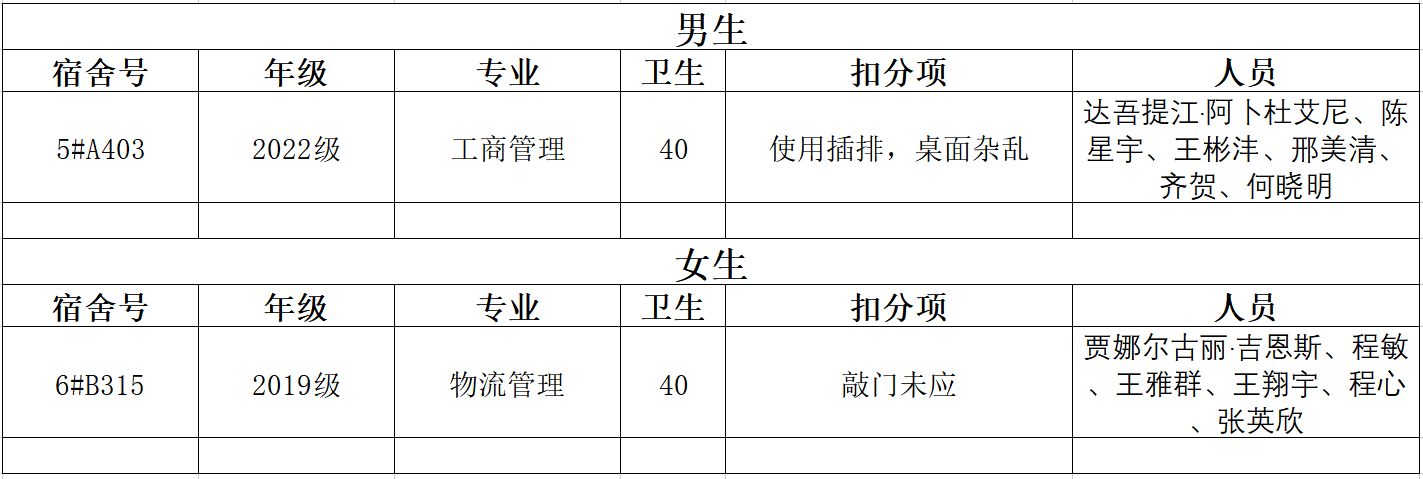 卫生检查结果及扣分细则请见附件,请各年级对照问题监督好不合格宿舍的整改。