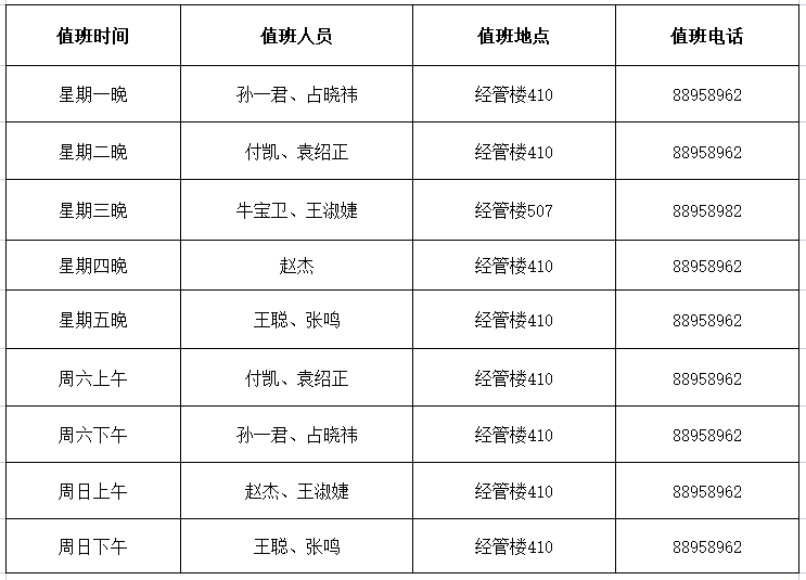 北京赛车PK10 学工队伍2022-2023学年第二学期常态化值班安排表