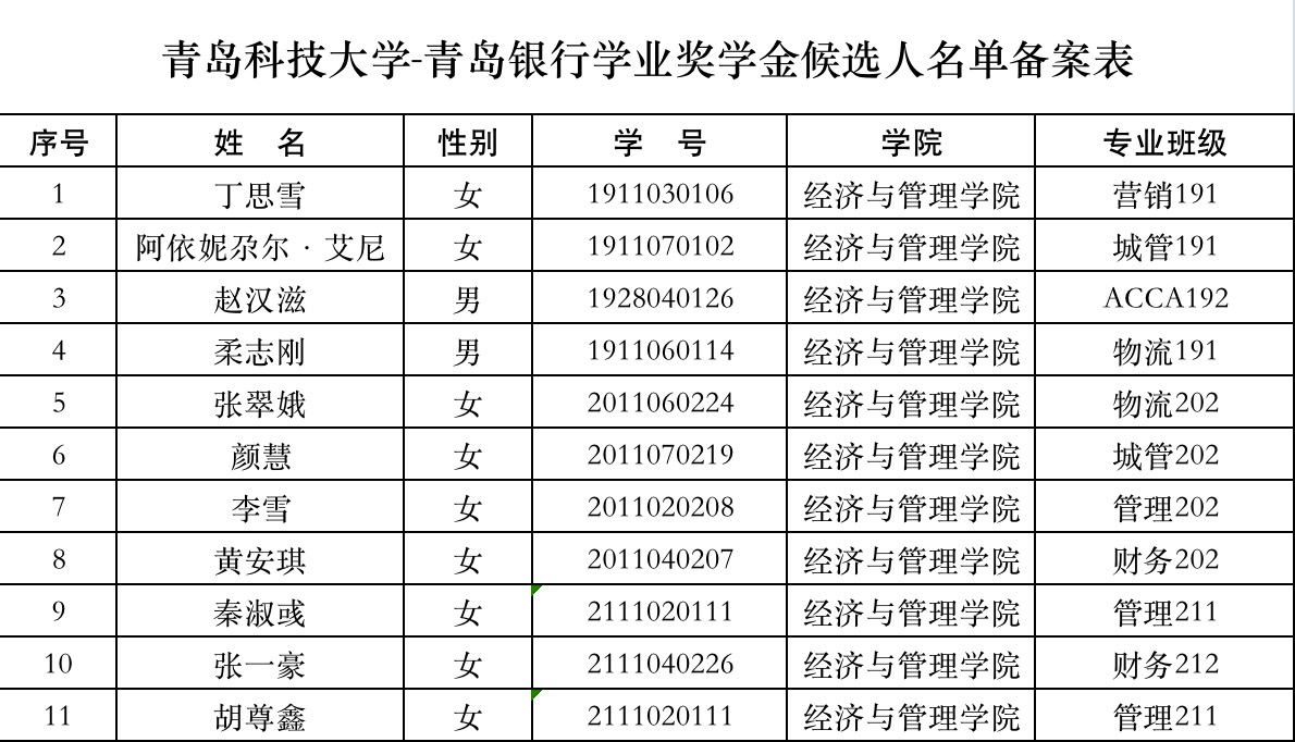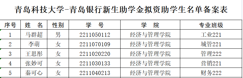 【公示】北京赛车PK10 2022年度青岛银行奖助学金名单公示