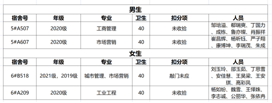 不合格宿舍如下: