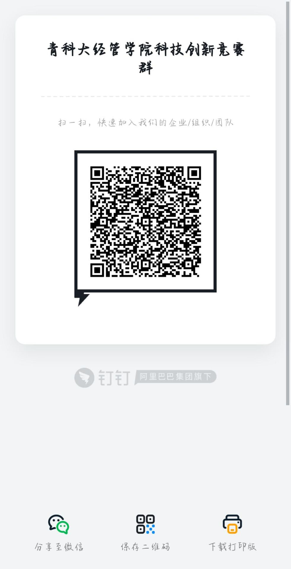 参与直播的成员扫码加入钉钉群,修改备注,等待直播开始通知(如图)。