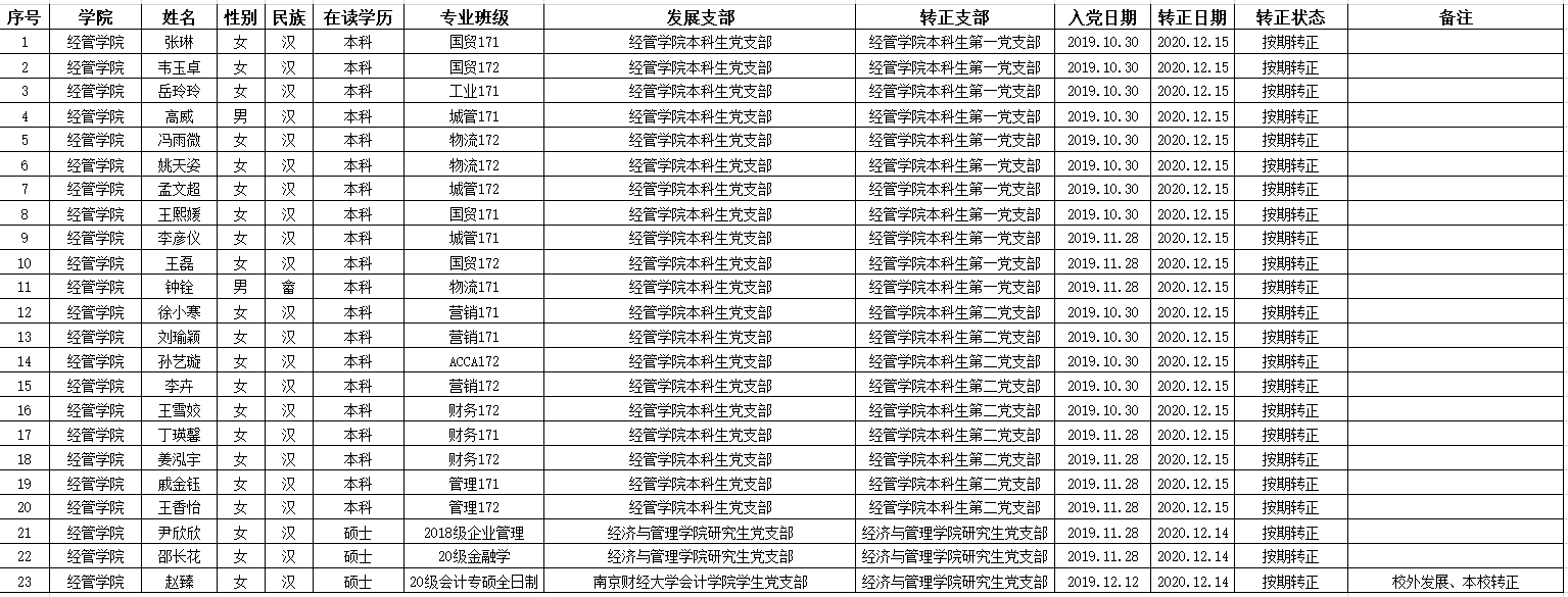 学生党支部于2020年12月14日、15日召开预备党员转正大会讨论张琳等23位同志的转正问题,同意以上同志按期转为中共正式党员,现将该23名同志情况予以公示。公示期为2020年12月15日至2020年12月21日。如有异议,请于公示期内到北京赛车PK10