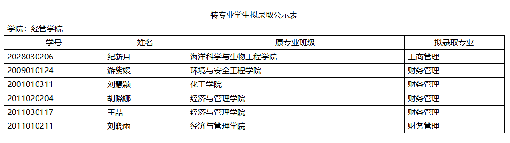 【公示】北京赛车PK10 2021年转专业学生拟录取公示