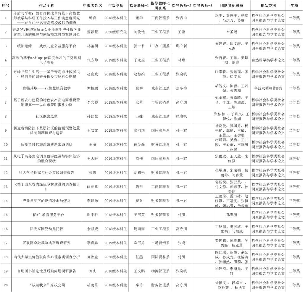 各参赛团队指导教师继续做好项目指导,各参赛团队学生持续加强与指导老师的沟通交流,进一步完善项目作品,提升作品质量,力争取得更加优异的成绩。接下来,2021年南风窗“调研中国 青年领导力公益平台”社会调查活动、“调研山东”社会调查活动等比赛将陆续开展,请相关团队及时关注后续通知,积极参赛。
