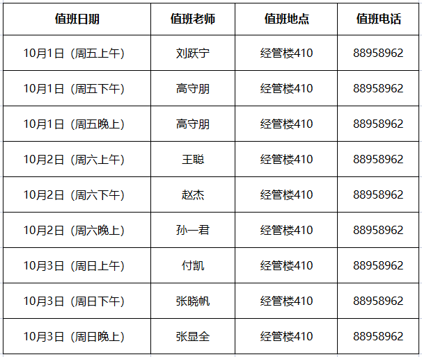 北京赛车PK10 学工队伍2021年国庆假期值班表