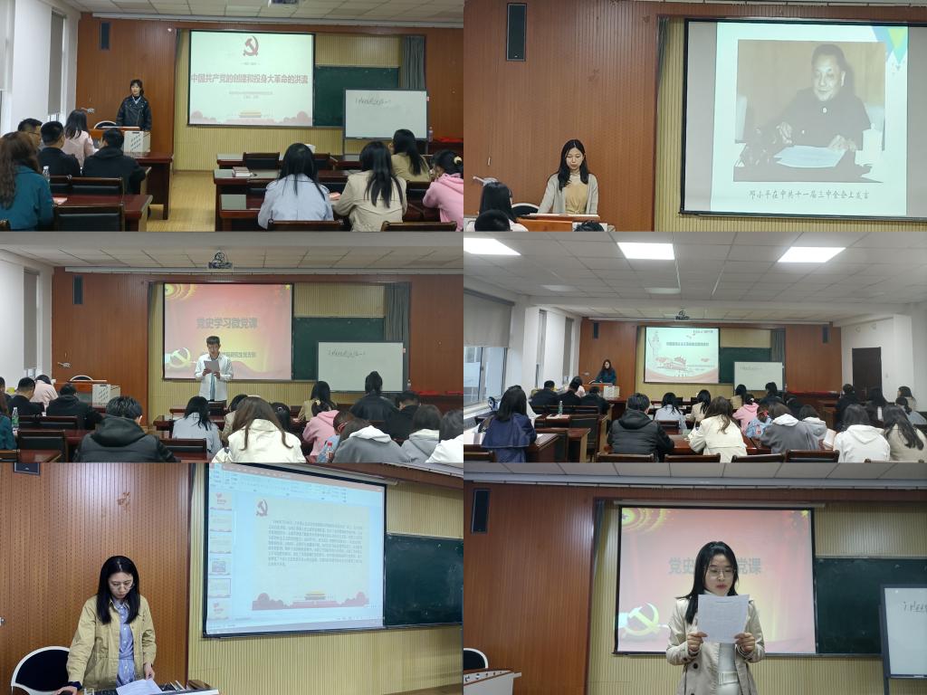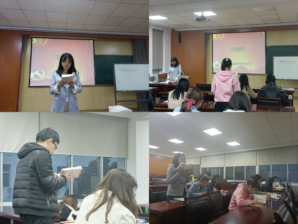 “微党课“讲家国情怀:党支部书记王聪以“在读原著、学原文、悟原理上下功夫”为主题,引导同学们带着问题学、深入思考学、联系实际学,用心去体会、悉心去领悟、诚心去践行,努力在学思用贯通、知信行统一上迈出新步伐、见到新成效。王妤、牛晓童等六位同学围绕党史的不同阶段,从中国共产党建立、土地革命风暴、全民族抗日战争的中流砥柱、中华人民共和国成立和社会主义制度探索等方面分享自己的理解与感悟,让党员同志们感受英雄儿女的团结力量和中华儿女的革命情怀。