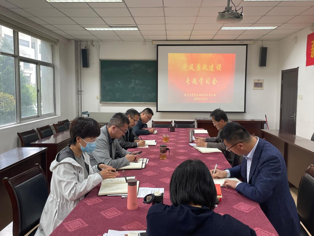 党委理论学习中心组于经管楼415会议室开展党风廉政建设专题学习。理论学习中心组成员参与学习,党委书记李德成主持学习。