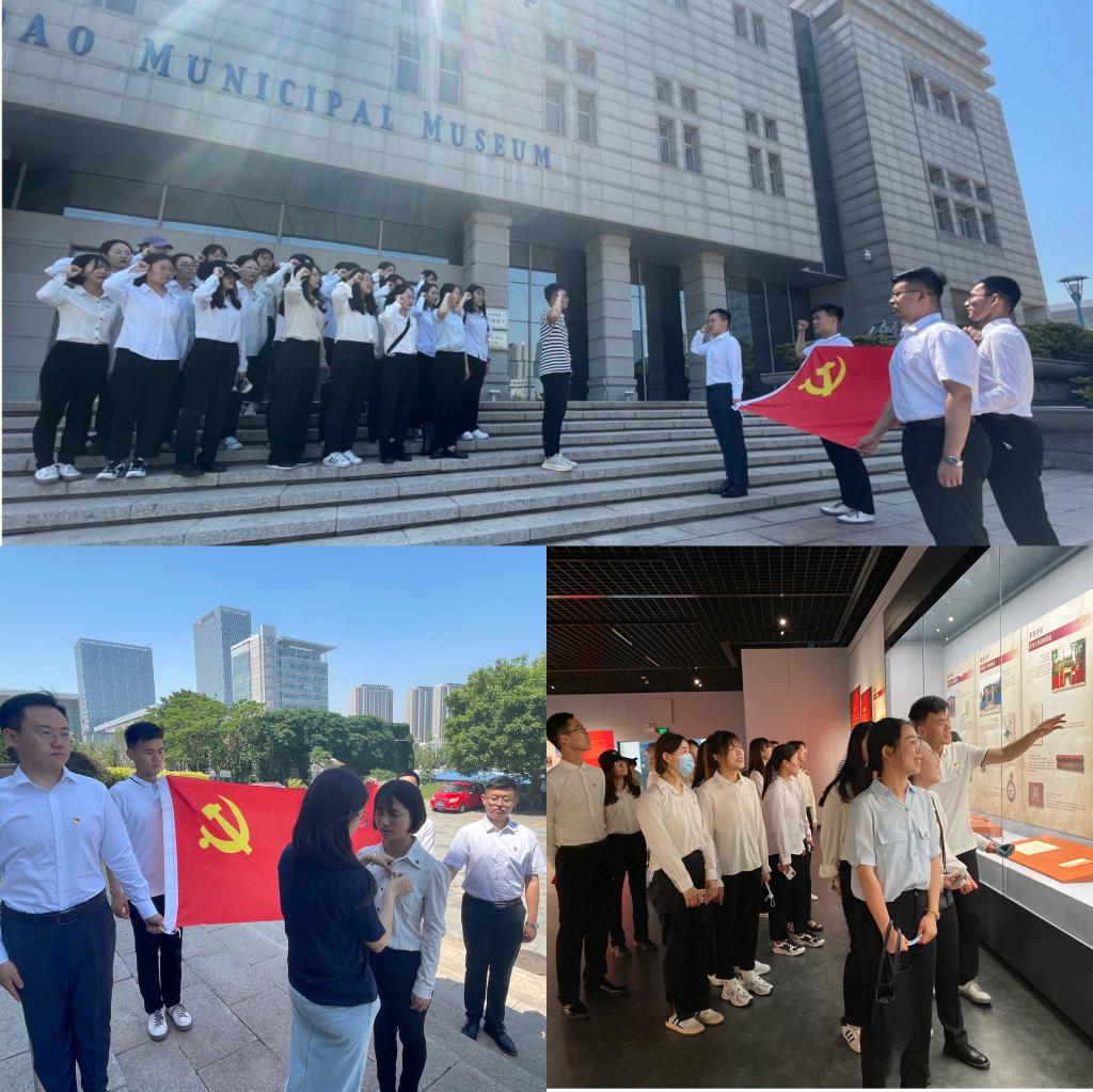 一段段珍贵的文字,一幅幅珍贵的图片,一幕幕感人的革命场景,折射着一个政党光荣的历史,记载着一个民族辉煌的瞬间,也深深地感染了每一位参观的党员。参观结束后,支部全体党员在馆外重温入党誓词,党支部书记张晓帆为新发展党员佩戴党徽。本次参观让党员们在接受了一次精神洗礼的同时,进一步坚定了理想信念,真正将党史学习教育落到实处。与此同时,党支部书记张晓帆对毕业生党员开展“感恩·奋进”主题教育,寄语广大毕业生党员要以先辈为榜样,继承红色精神、积淀红色基因,在工作岗位中进一步发扬党员先锋榜样作用。