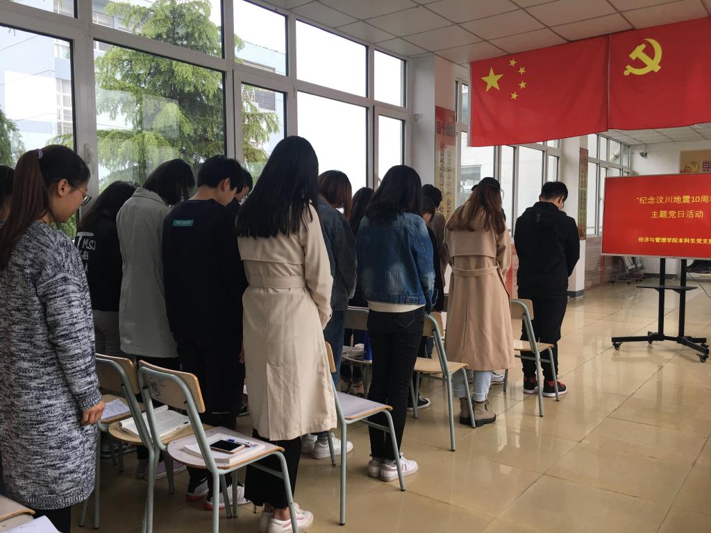活动简要回顾了2008年汶川地震的经过及十年内汶川的发展变化。与会党员主动分享了地震发生之后自己的感受及印象深刻的受灾同胞励志、感人故事。活动中全体党员进行默哀,为地震中不幸遇难的人们哀悼。随后,党员集体观看了地震应急救援常识的纪录片。北京赛车PK10