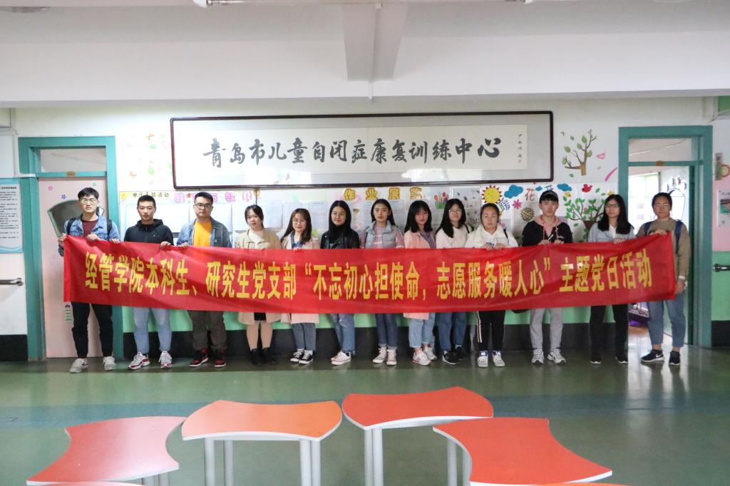 本科生、研究生党支部搭借暖心愿志愿服务平台,成立党员先锋队,与志愿者们共赴青岛市儿童自闭症康复训练中心和中韩爱心幼儿园,开展“不忘初心担使命,志愿服务暖人心”主题党日活动。