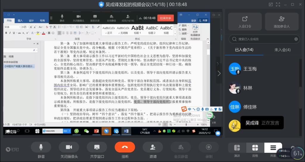 整场活动由物流党支部书记吴成锋老师主持。首先围绕会议主题,由吴老师宣讲,大家一起认真学习了《中国共产党重大事项请示报告条例》,《纪检监察机关处理检举控告工作规则》和《中国共产党党内法规执行责任制规定(试行)》。