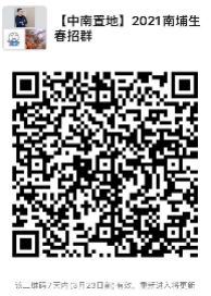 扫描下方二维码,加入“【中南置地】2021南埔生春招群”,找到群内的HR小伙伴,把你的简历发送给他/她。