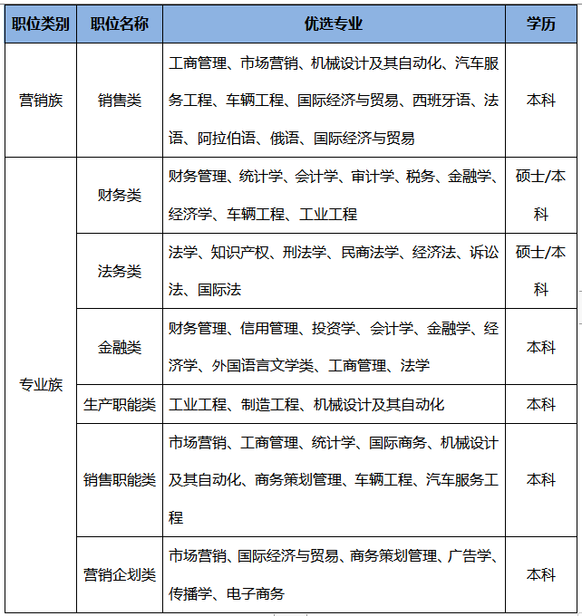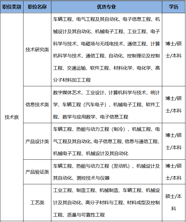 | 理工类专业,车辆工程、机械设计、自动化、智能制造、计算机科学、电子信息类等专业优先