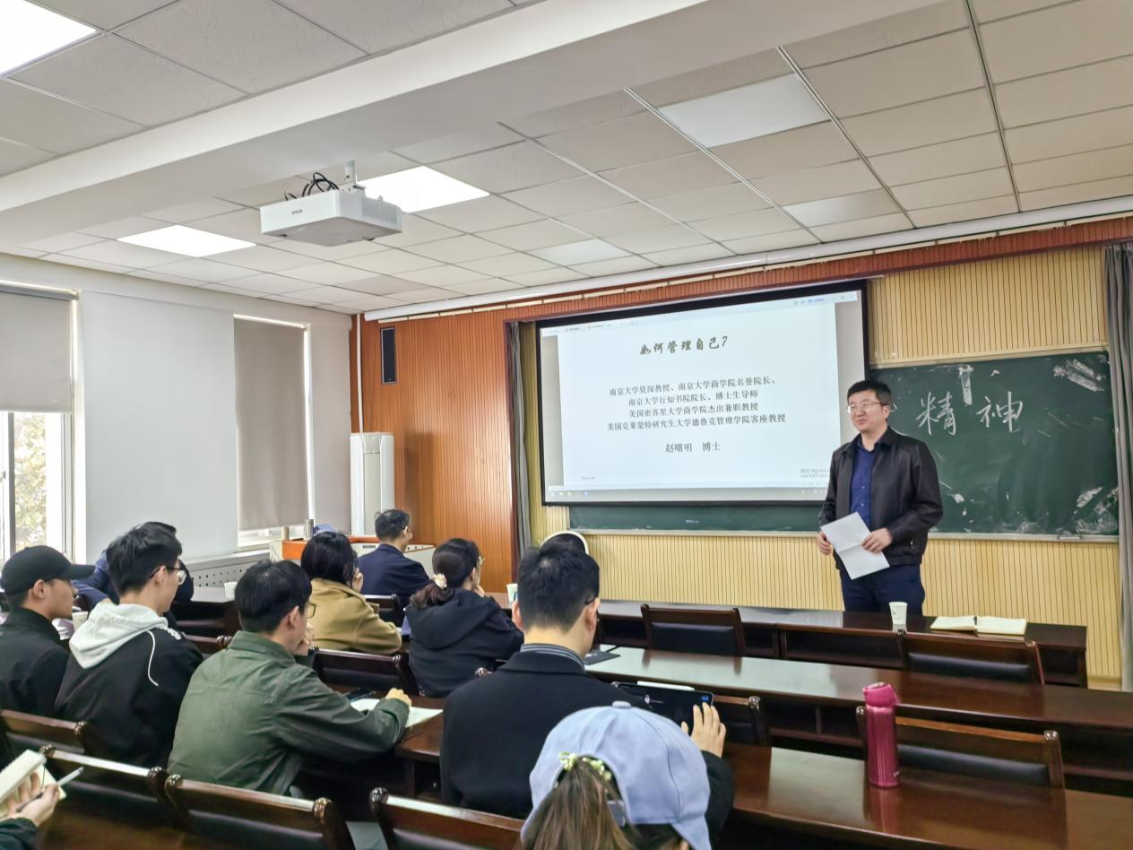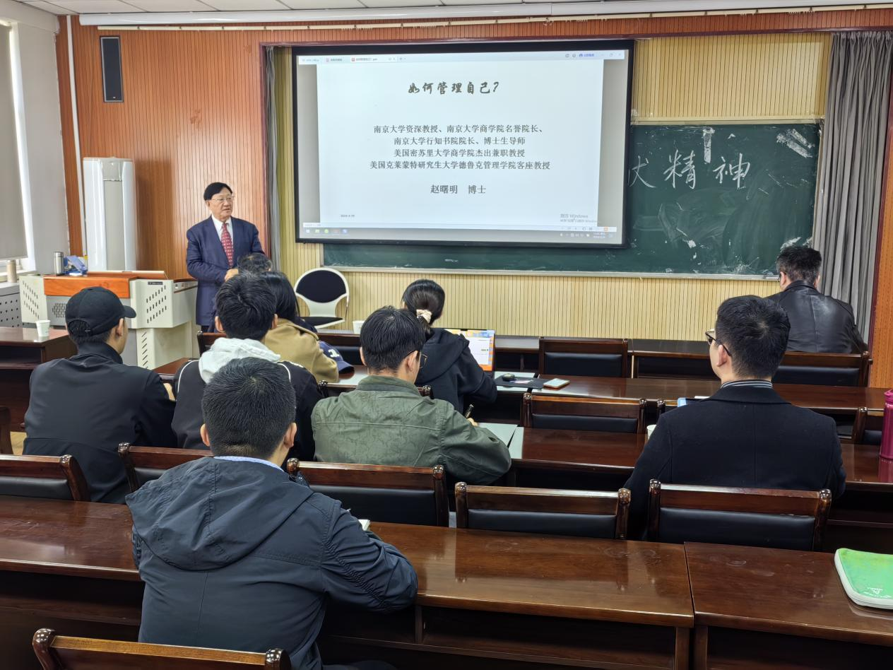 讲座中,赵曙明教授指出数智时代下人才培养面临着重大的机遇与挑战,自我管理、自主发展对于培养符合新时代要求的创新型人才具有重要意义。本次讲座围绕“什么是管理”等主题,深度剖析管理大师彼得·德鲁克跨越时空的管理思想,结合演讲者自身经历经验和人生智慧,从“了解自己”“管理人际关系”和“管理后半生”三个方面,回答“如何管理自己”这一重要命题。