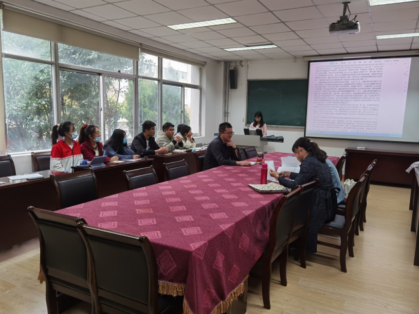 其次,陈明老师和索琪老师就论文内容进行点评,陈明老师指出写英文论文需要多看文章,了解英文写作习惯,多引用英文文献,并对论文中出现的问题提出了自己的见解;索琪老师表示英文写作要注意语法和时态问题,尽量避免使用绝对语气,多使用短句,文献作者引用方法要统一,并对文章的结构提出了自己的看法。