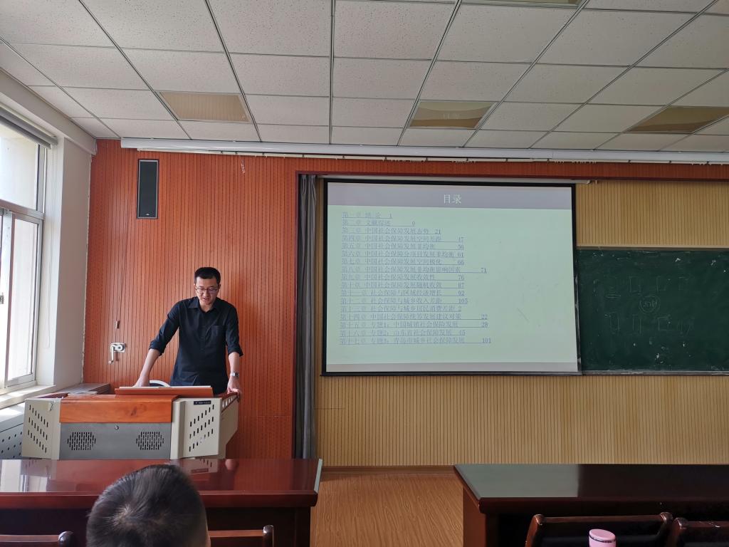 接着,吕承超教授向师生们分享了其近期的一本著作,该著作的题目为“中国社会保障发展研究:基于非均衡时空视角”,其中包含了绪论、文献综述、中国社会保障发展态势、发展非均衡、非均衡影响因素、发展收敛性等十七个章节。吕教授从中国社会保障发展态势的背景出发,在介绍中国社会保障发展的一些问题和现状的基础上,利用计量方法将这些问题进行量化,并得出了一些有效的结论。吕教授指出,这本著作是其近期发表的一系列文章进行整合和修改后完成的,各个章节都是相互关联的,因而他鼓励我们在撰写论文之前,要有总体的框架体系,接着完成体系中的每一部分,最后聚成整体从而使该研究主题具有延续性和传承性。
