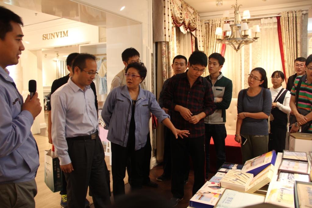 在孚日集团的成品展厅,吴明凤总经理向大家展示了集团琳琅满目、极富设计感的产品,并对企业的经营、管理理念做了详细介绍。在生产车间,大家参观了纺纱、印染、织布直到成品生产的生产过程,高度自动化的生产设备给同学们留下了深刻印象。