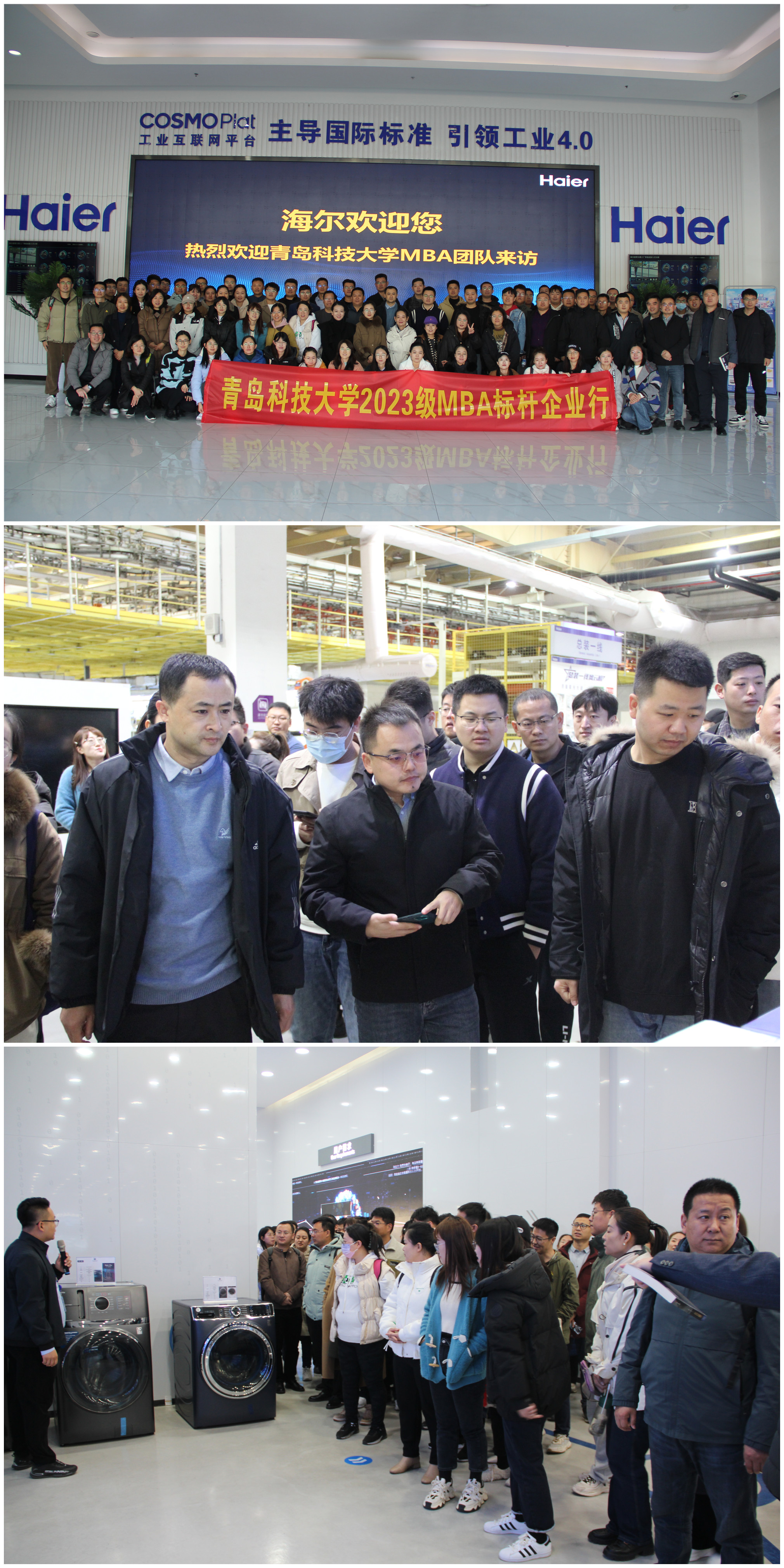 2023级MBA标杆企业行”活动走进海尔中德海尔滚筒互联工厂和澳柯玛创新中心,近距离感受中国高端智能制造业的独特魅力。2023级MBA全体学员以及MBA教育中心教师代表参加了此次活动。