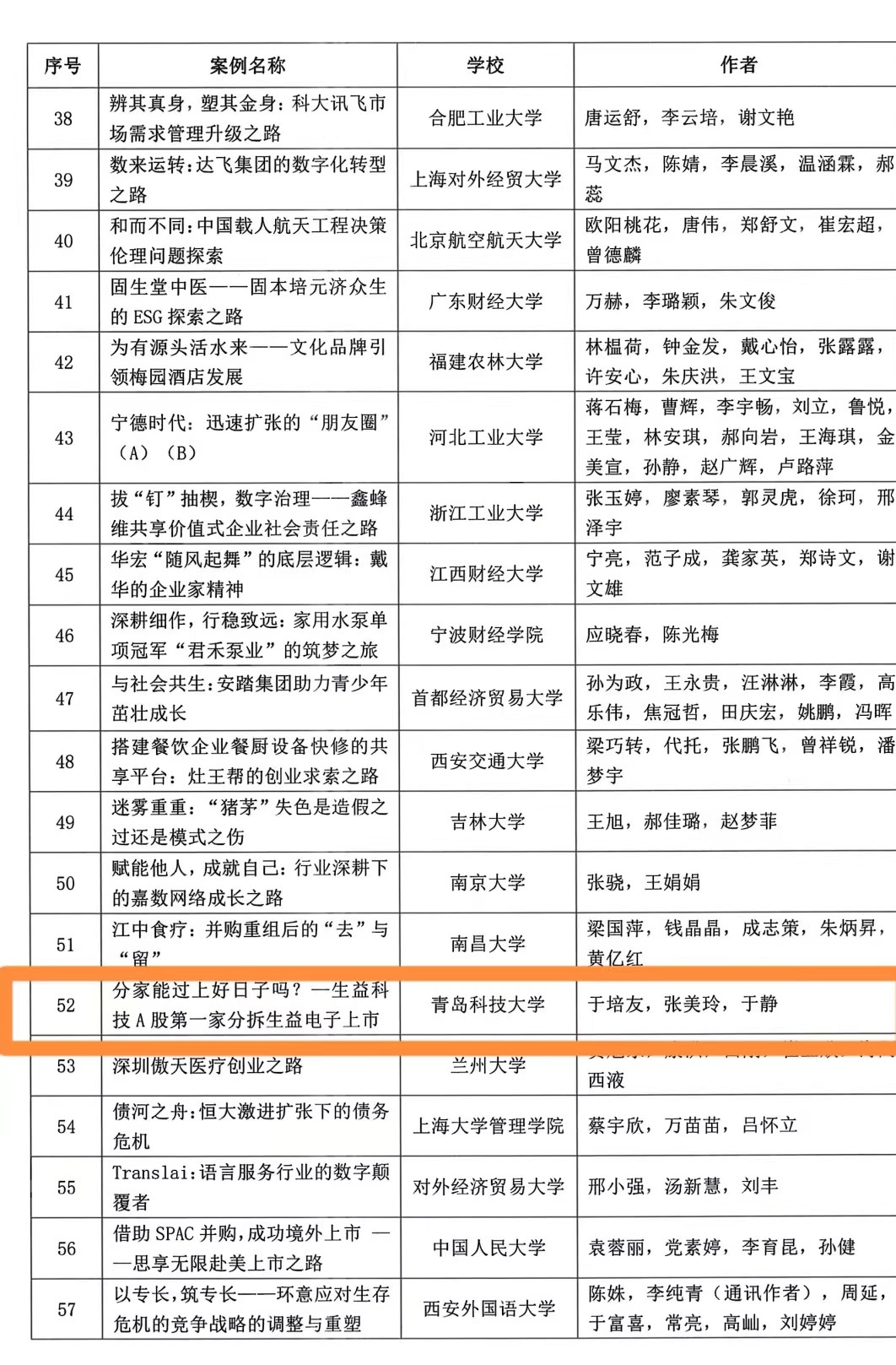 教师于培友撰写的《分家能过上好日子吗?—生益科技A股第一家分拆生益电子上市》成功入选。